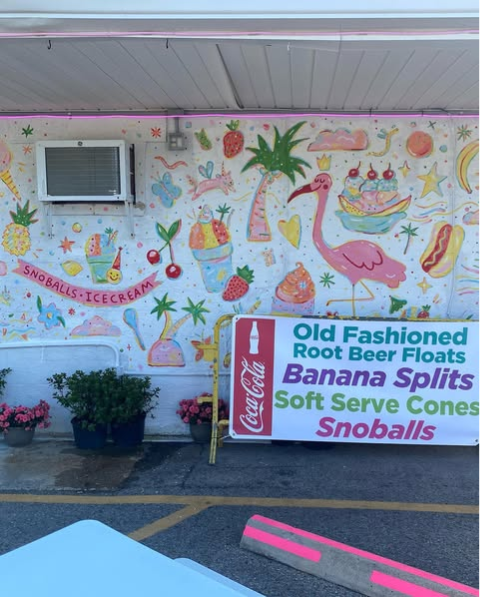 This mural, painted by Hannah Gumbo, is located at Ms Mary’s Ole Town Snoballs and Ice Cream Shop.