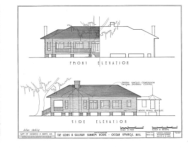 However, Wright wrote in his Genius and the Mobocracy that Sullivan “remained away for six weeks at Ocean Springs, Mississippi, in the country house I had designed for him” and that Sullivan’s rose garden was “next door to his beloved friends the Charnleys for whom I had drawn a cottage.”