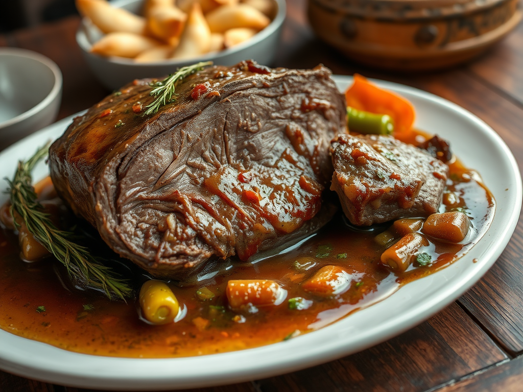 Yet this recipe results in a delicious, melt-in-your-mouth pot roast with rich, savory gravy.