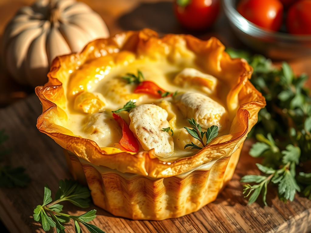 Serve: Let the chicken pot pie stand for 5 minutes before serving. Serve hot.